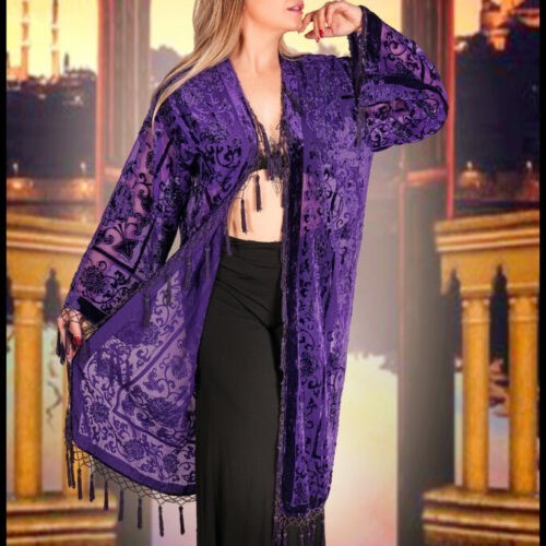 DEEP PURPLE ARTDECO STEVIE NICKS STYLE VELVET MUCHA GYPSY BOHO DELUXE DUSTER