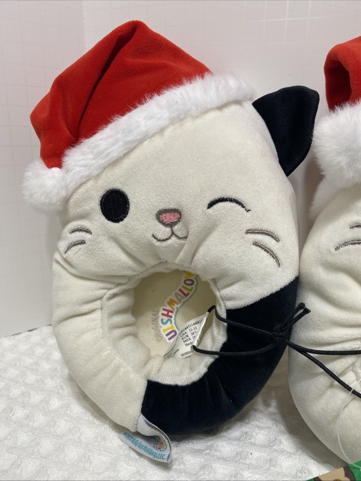 как выглядит SQUISHMALLOWS SLIPPER SIZE 11-12, CAM THE CAT, SANTA HAT, HOLIDAY SQUISHMALLOWS. фото