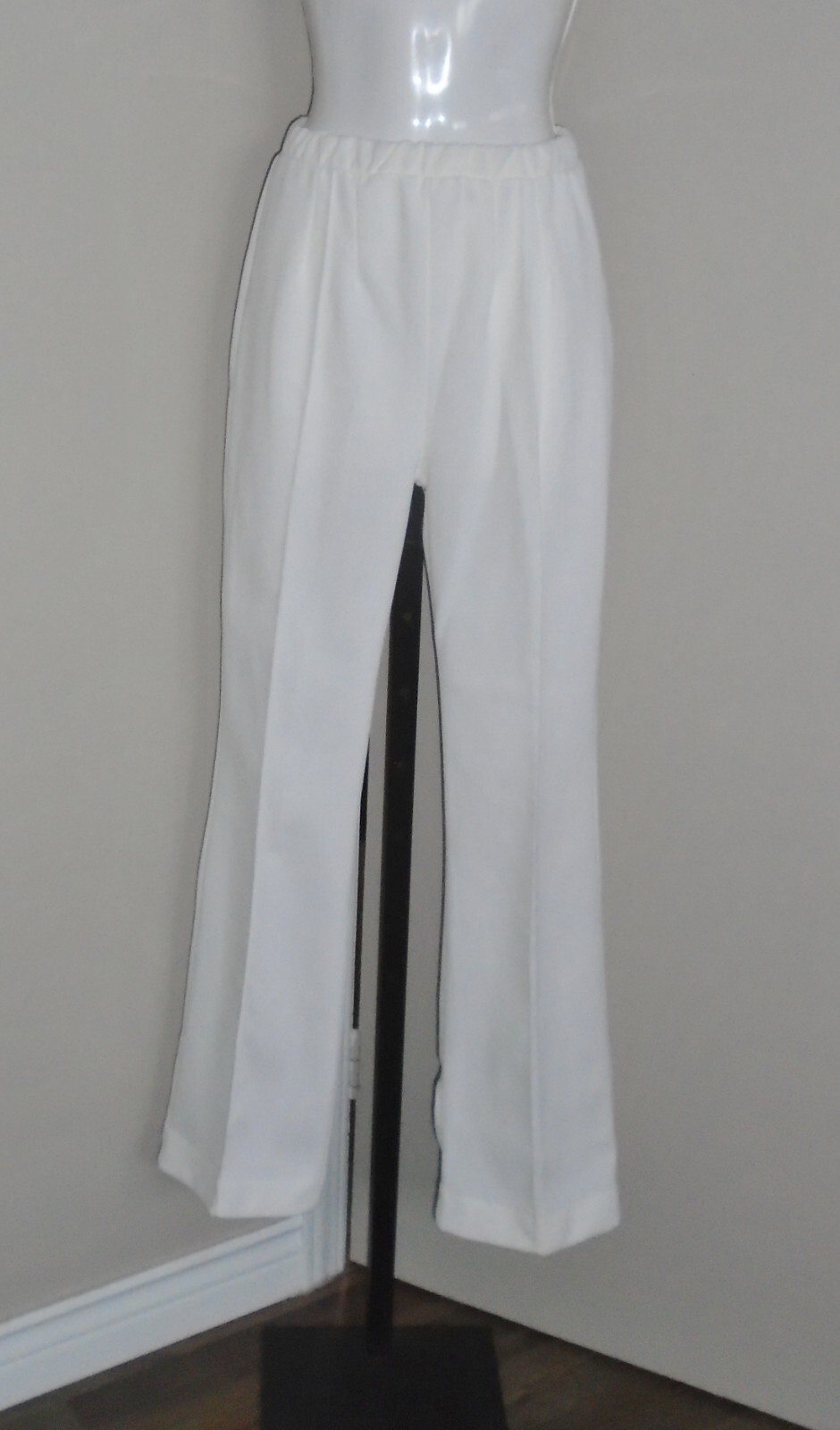 Ladies VTG 1970s White Ribbed Polyester Wide Leg Pull On Dress Pants Sz S/M NOS
