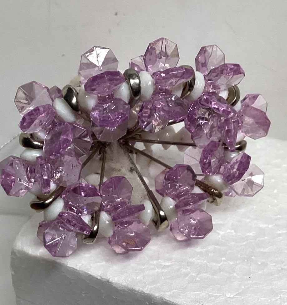 Vintage 3 Safety-Pin Doll, Ornament Beaded Dress With Hat, Handmade Purple