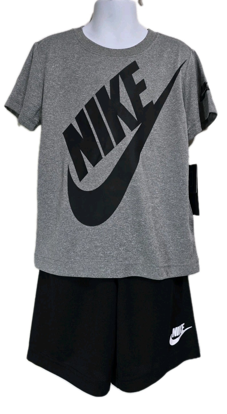 New Nike Boy's Dri-fit Gray T-Shirt Gray/Black Shorts Set Size7 100 polyester
