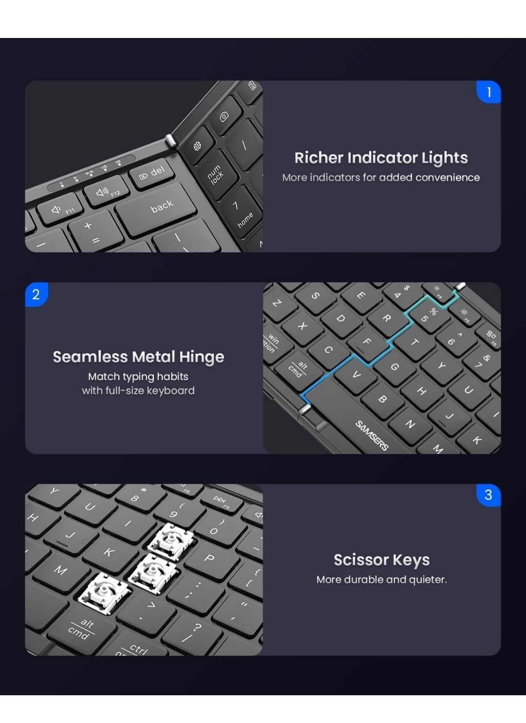 Foldable Keyboard and Mouse, Folding Bluetooth Keyboard Mouse Combo, 2.4G B...
