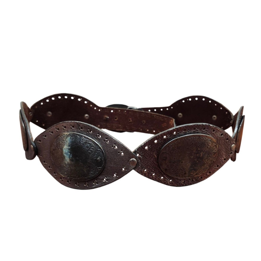 как выглядит Vintage Avignon Silver Leather Embellished Metalwork Wide Belt size L Bohemian фото