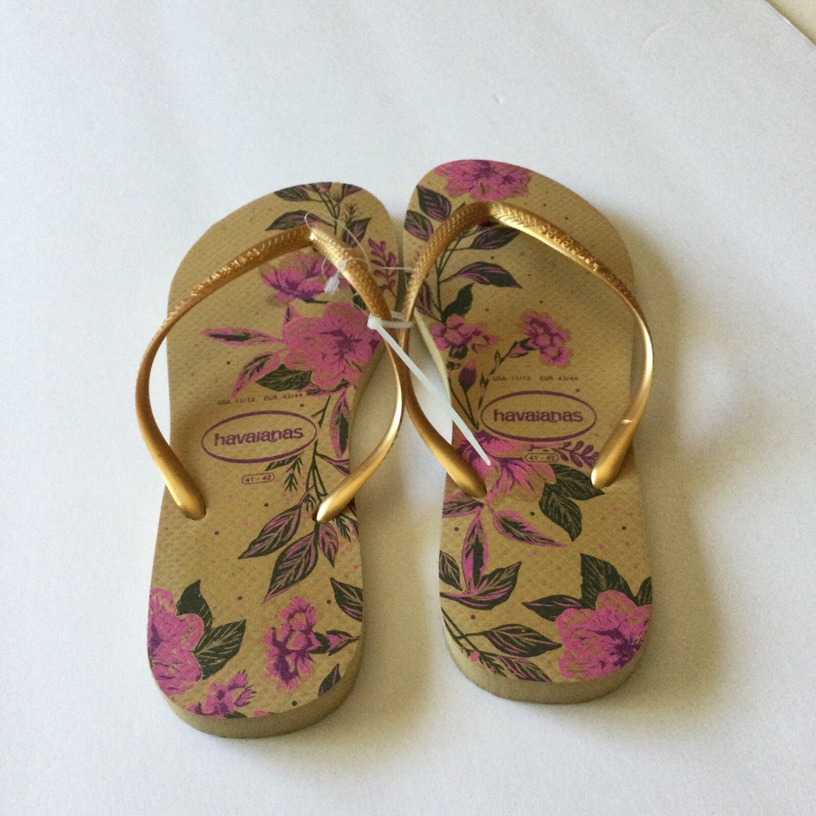 как выглядит HAVAIANAS WOMENS FLORAL FLIP FLOPS GOLD ORCHID TAN US SIZE 11/12 NWOT фото