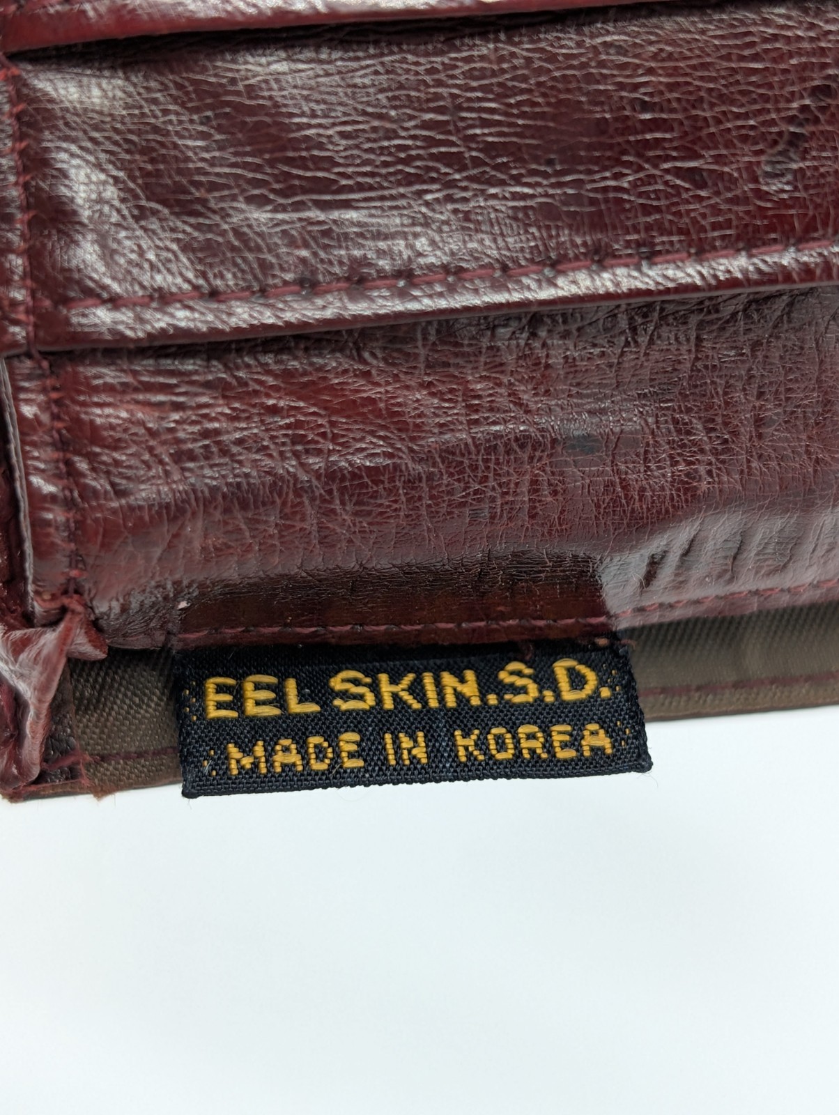Genuine Eel Skin Leather Burgundy Small Folding Vintage Wallet Korea
