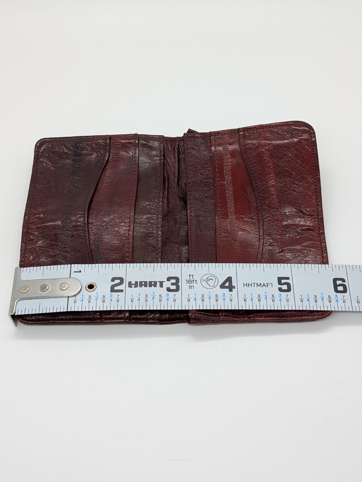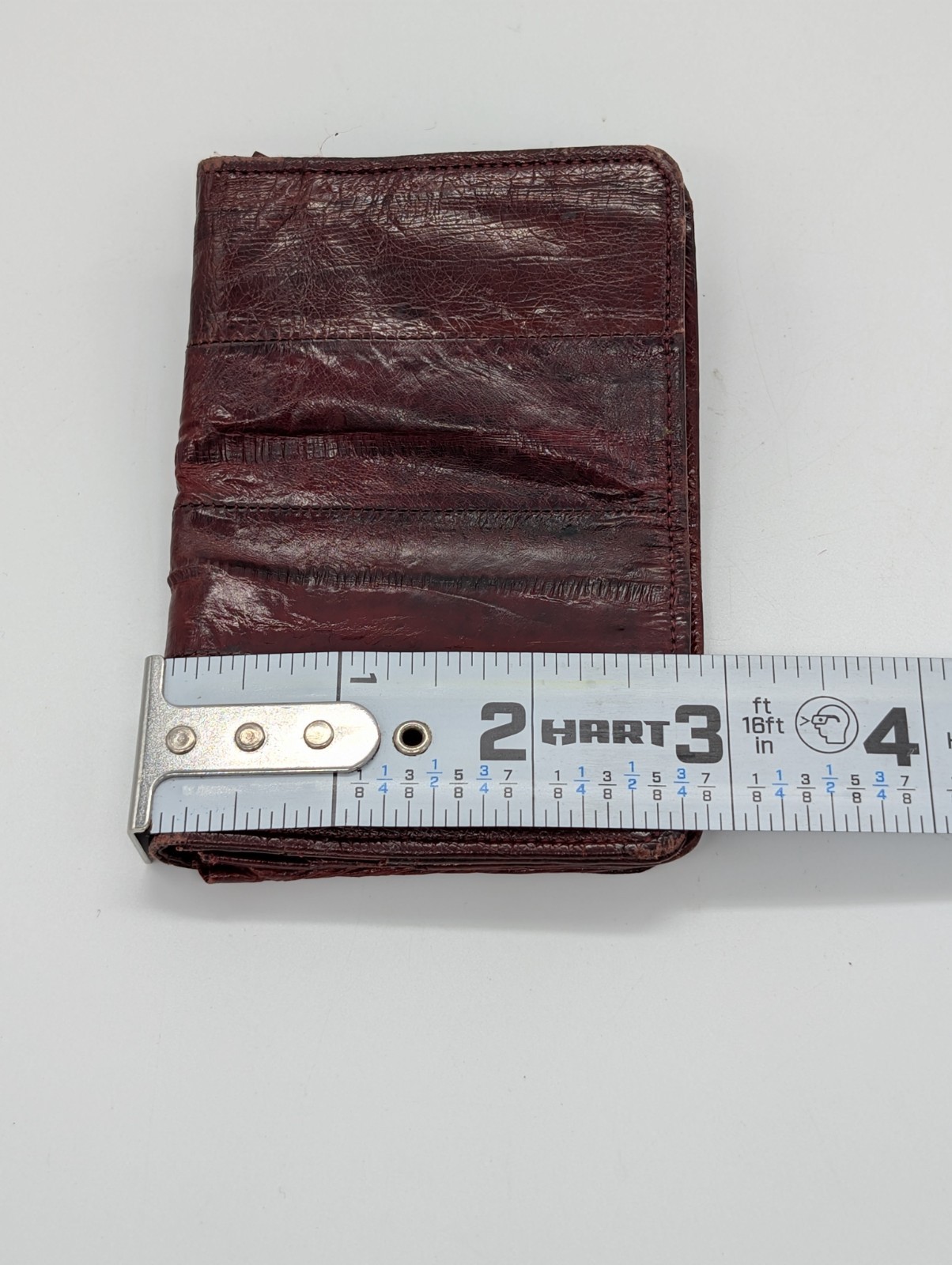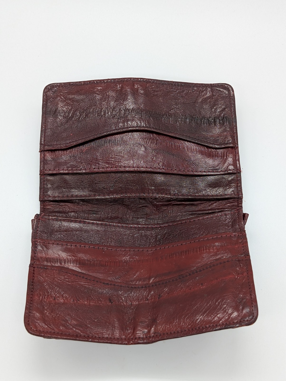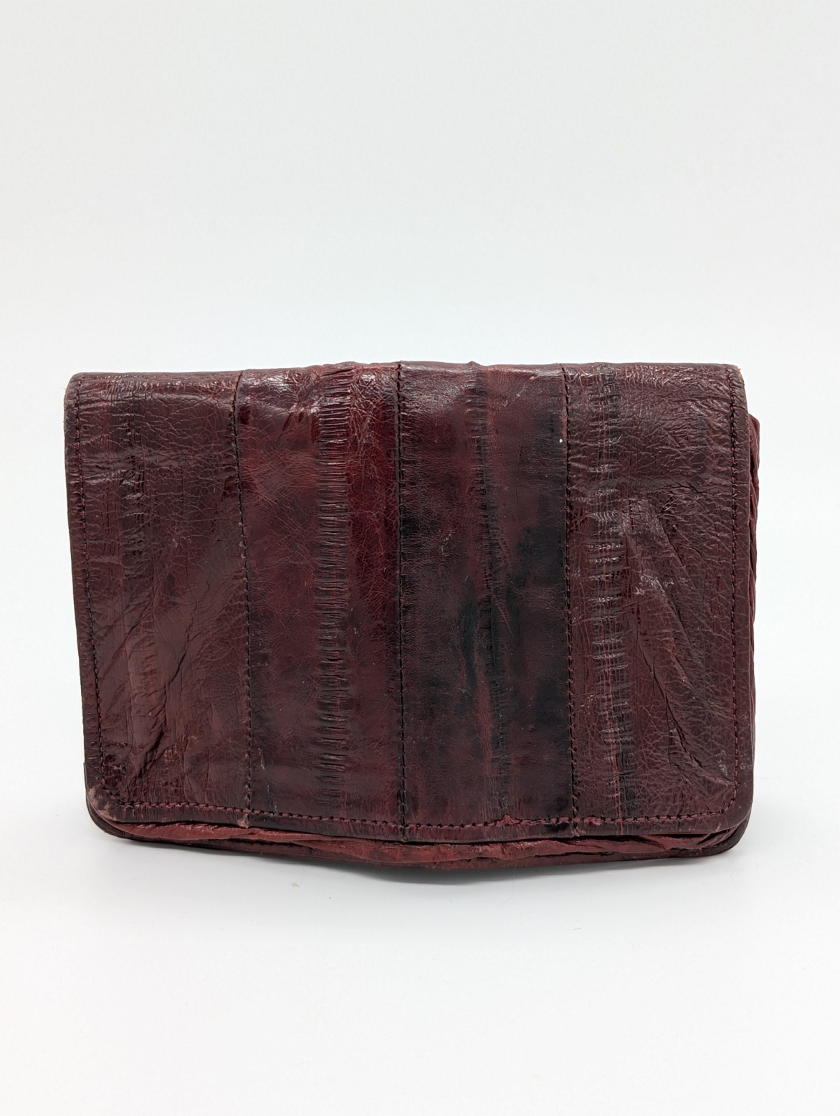 как выглядит Genuine Eel Skin Leather Burgundy Small Folding Vintage Wallet Korea фото