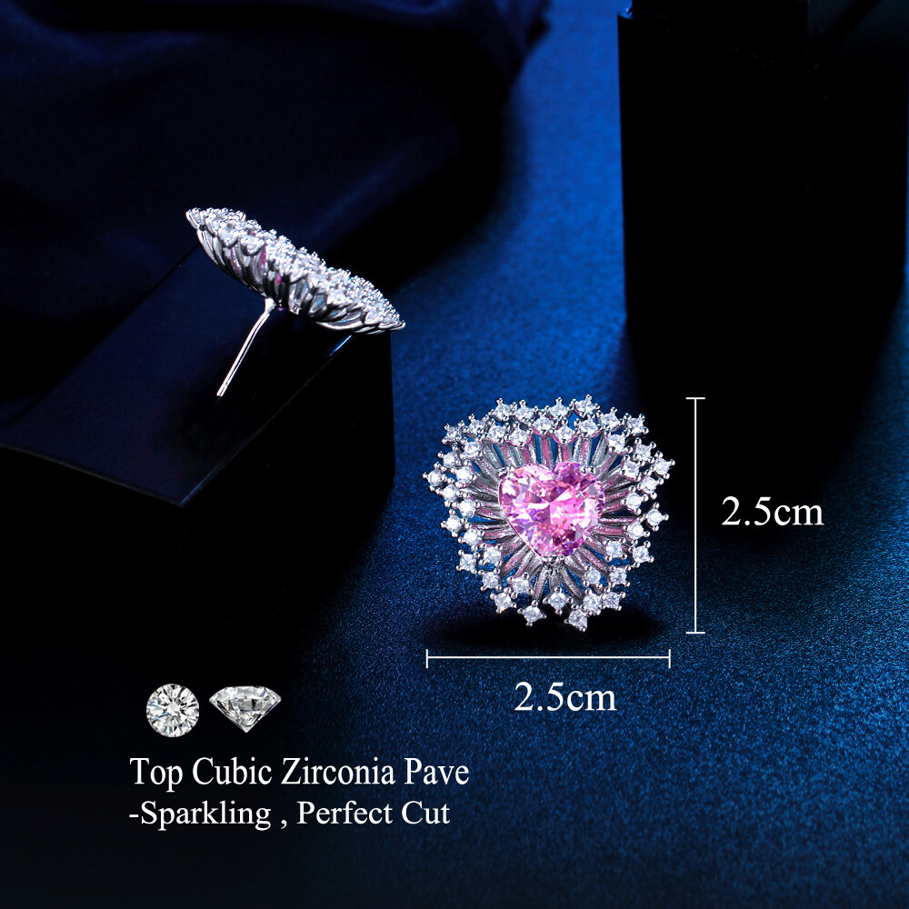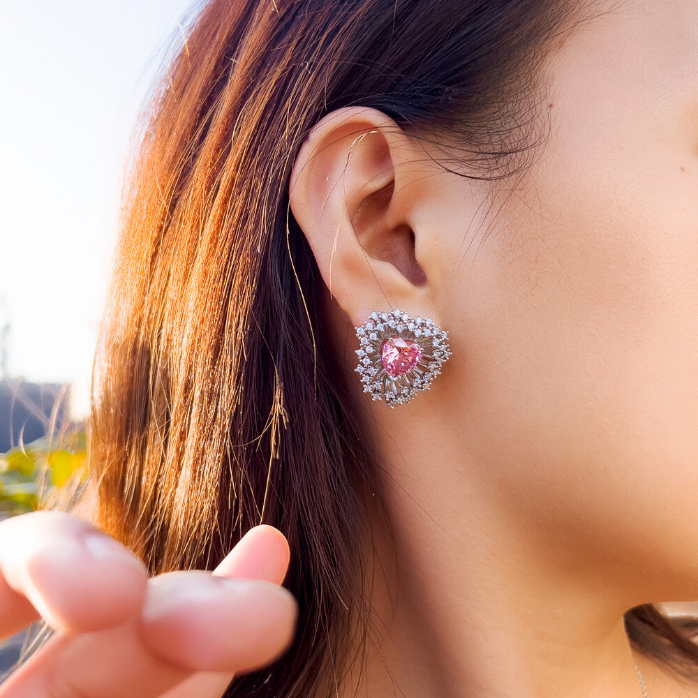 Item Type: Women Gorgeous Silver Plated Pink Heart CZ Wedding Stud Earrings