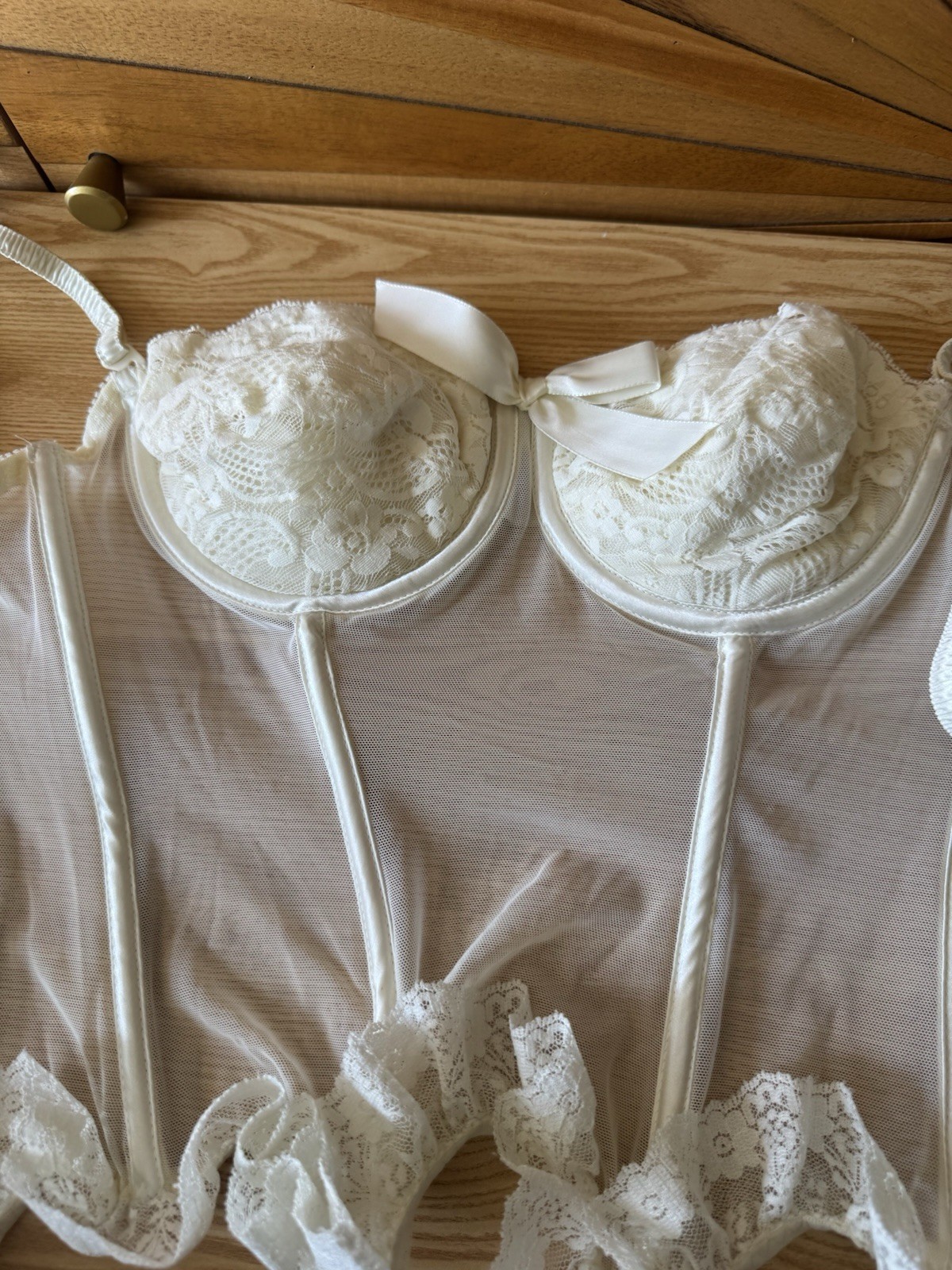 как выглядит VTG Victoria s Secret Cream Satin Lace Lingerie Bustier Corset 36 C фото