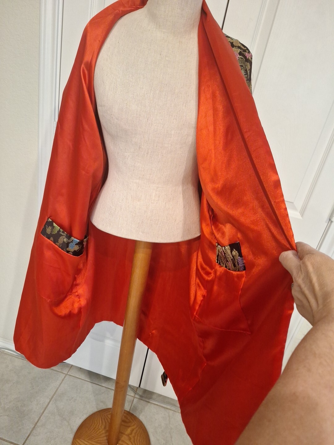 как выглядит Silver Dragon Black Robe Red Trim Asian Design Reversible фото