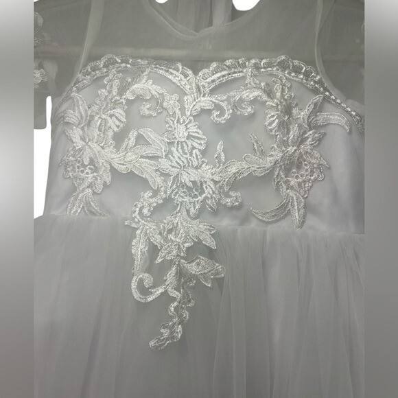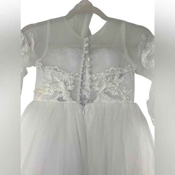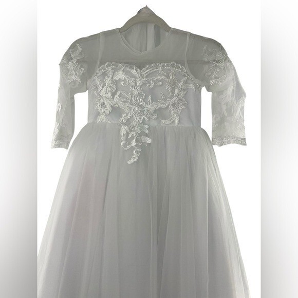 как выглядит Girls Flower Girl White Dress W/ Corset Back, Lace Train фото