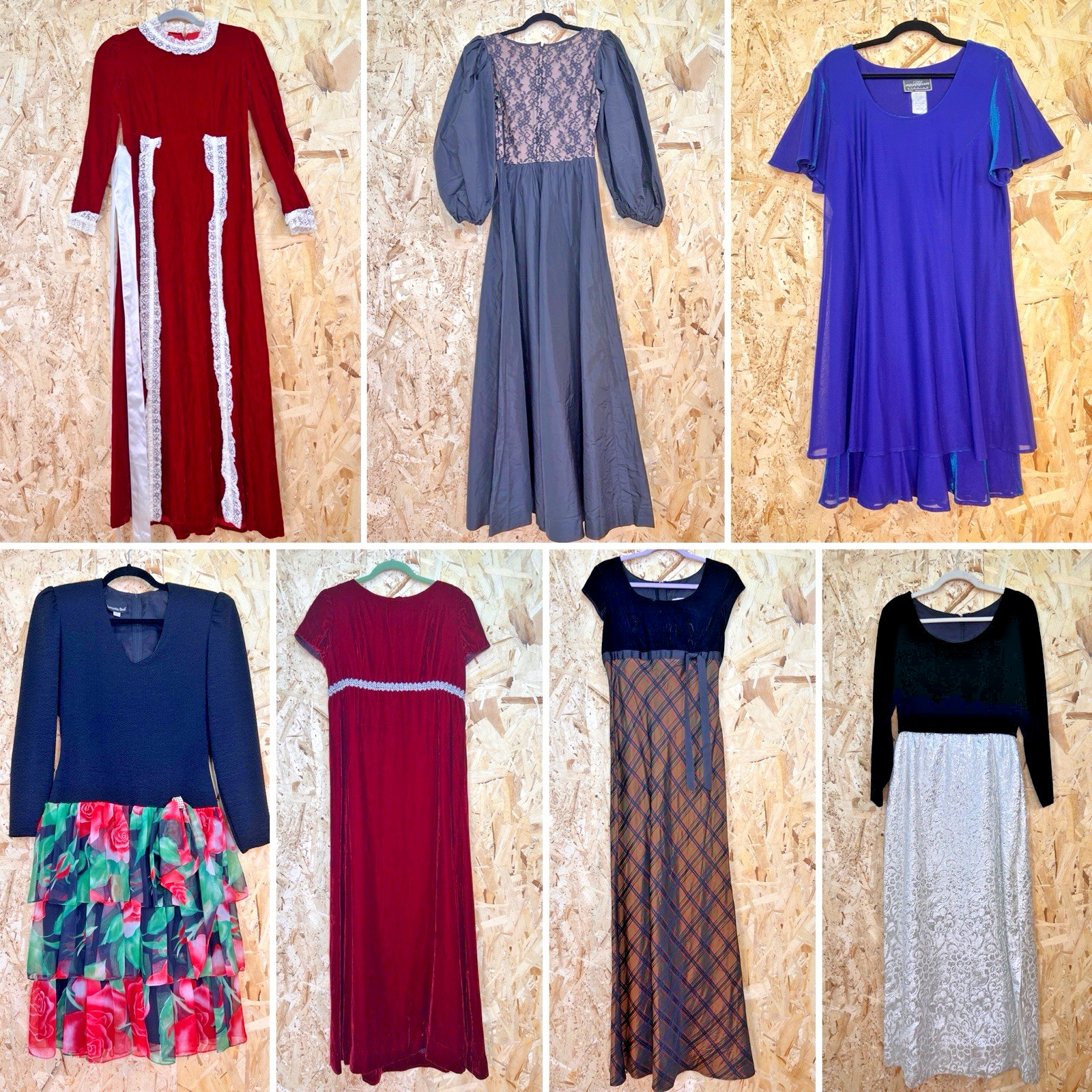 24pc VTG Womens Evening Dress Lot, 1960s 1970s 1980s Formalwear Wholesale Bundle