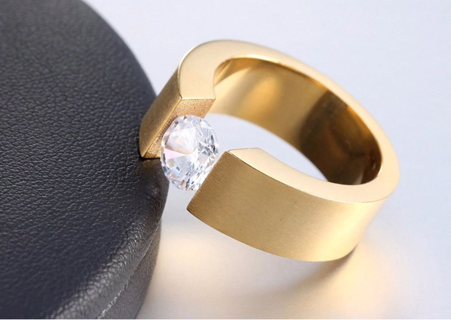 Wedding Band Ring for Men or Women 8mm Wide Gold Stainless Steel 1 Ct Cz Ging...