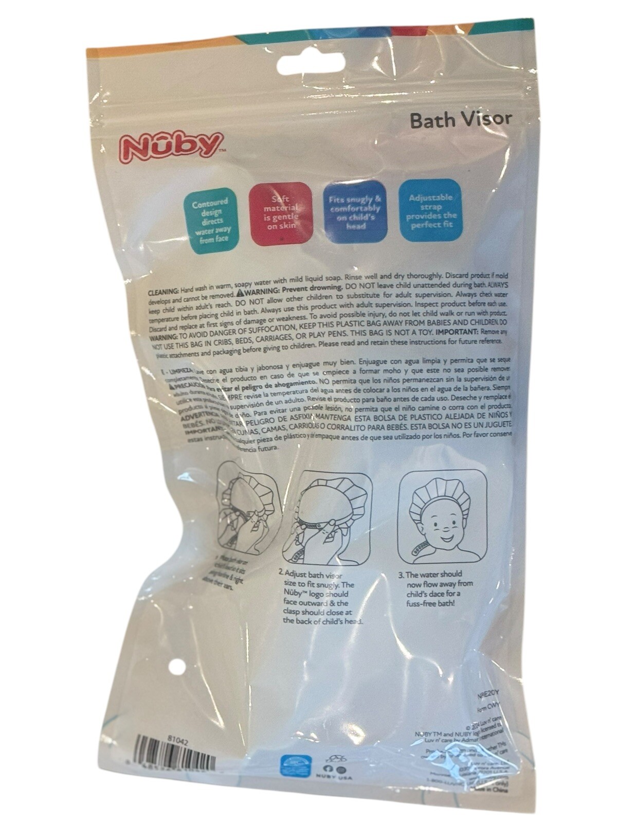 Nuby Baby Bath Hat Visor Soft -Protects Face Eyes - Adjustable Strap NWT