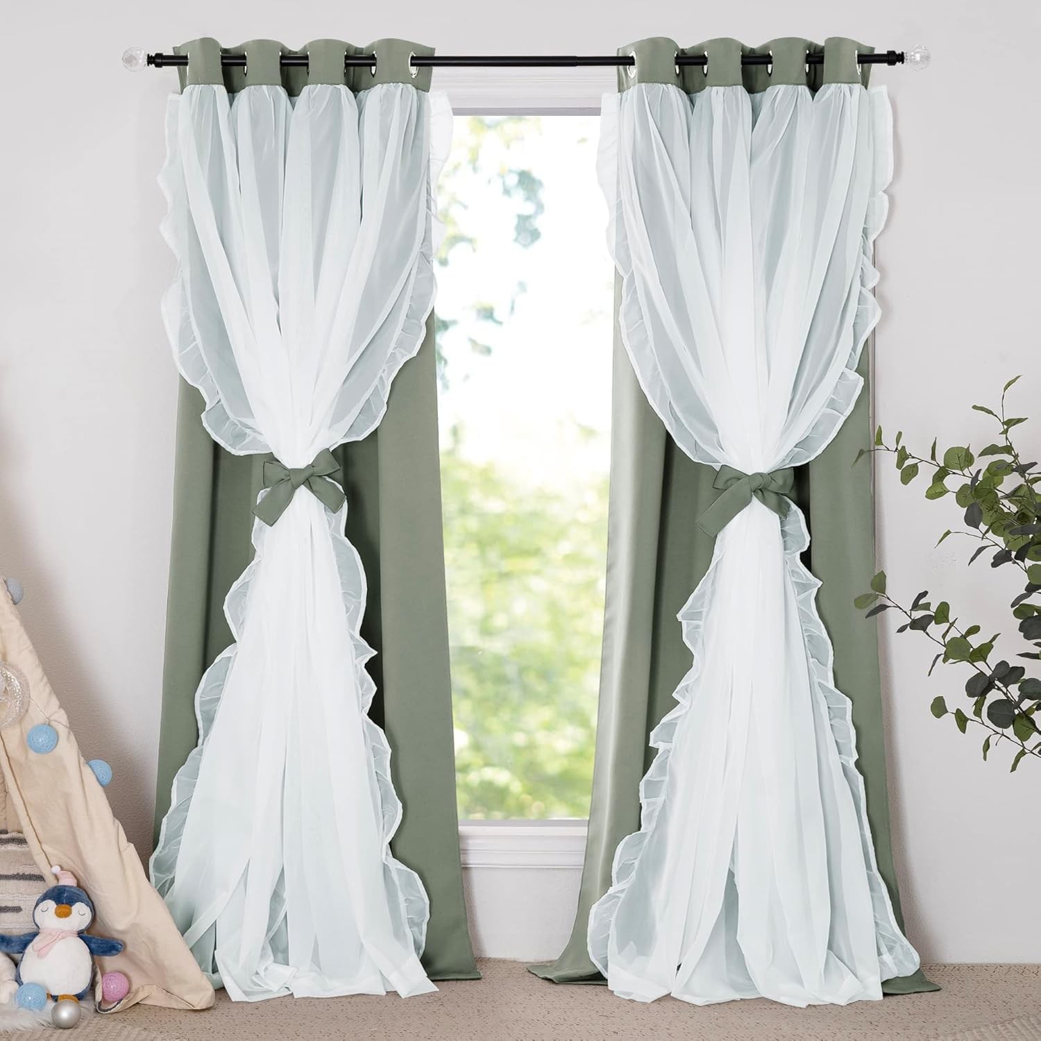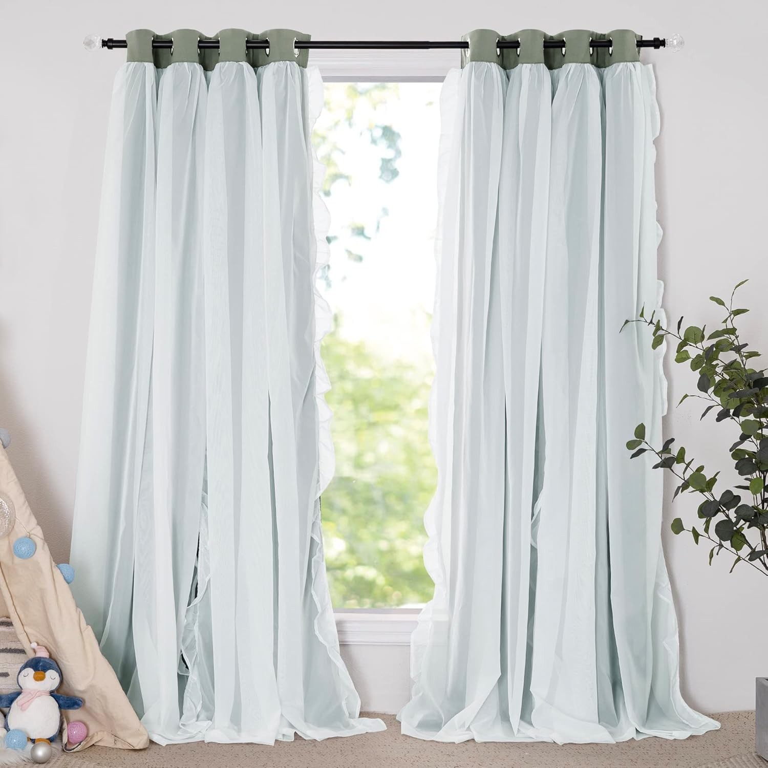 как выглядит PONY DANCE Blackout Curtains 52 quot;W x 84 quot;L Pack of 2 , Sage Green фото