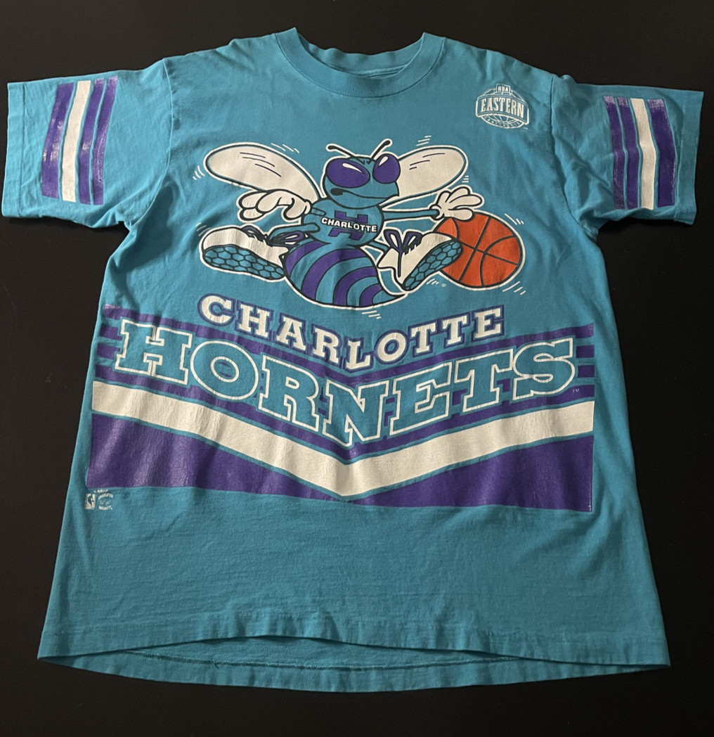• Vintage 90s Salem Sportswear Charlotte Hornets Teal T-Shirt, Size: Large