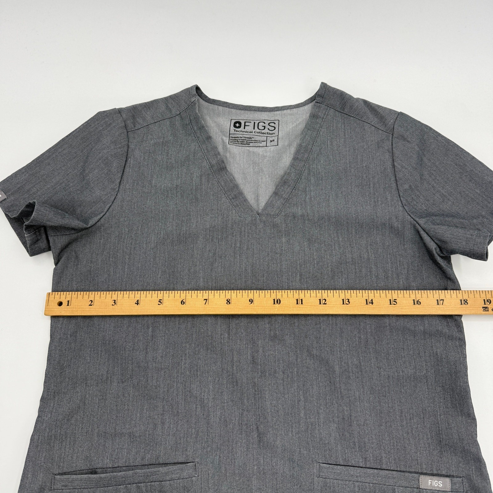 как выглядит FIGS Womens Casma Three Pocket Scrub Top Size XS Grey Short Sleeve FW1100 фото