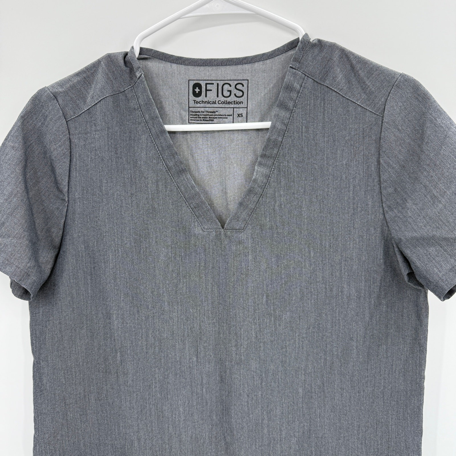 FIGS Womens Casma Three Pocket Scrub Top Size XS Grey Short Sleeve FW1100