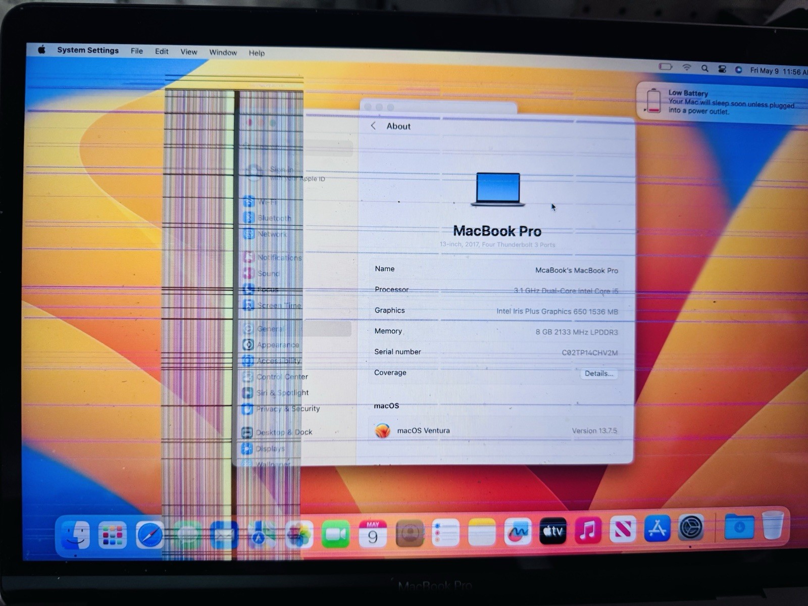 Apple MacBook Pro A1706 13 Intel Core i5-8GB RM 500GB screen problemPARTS