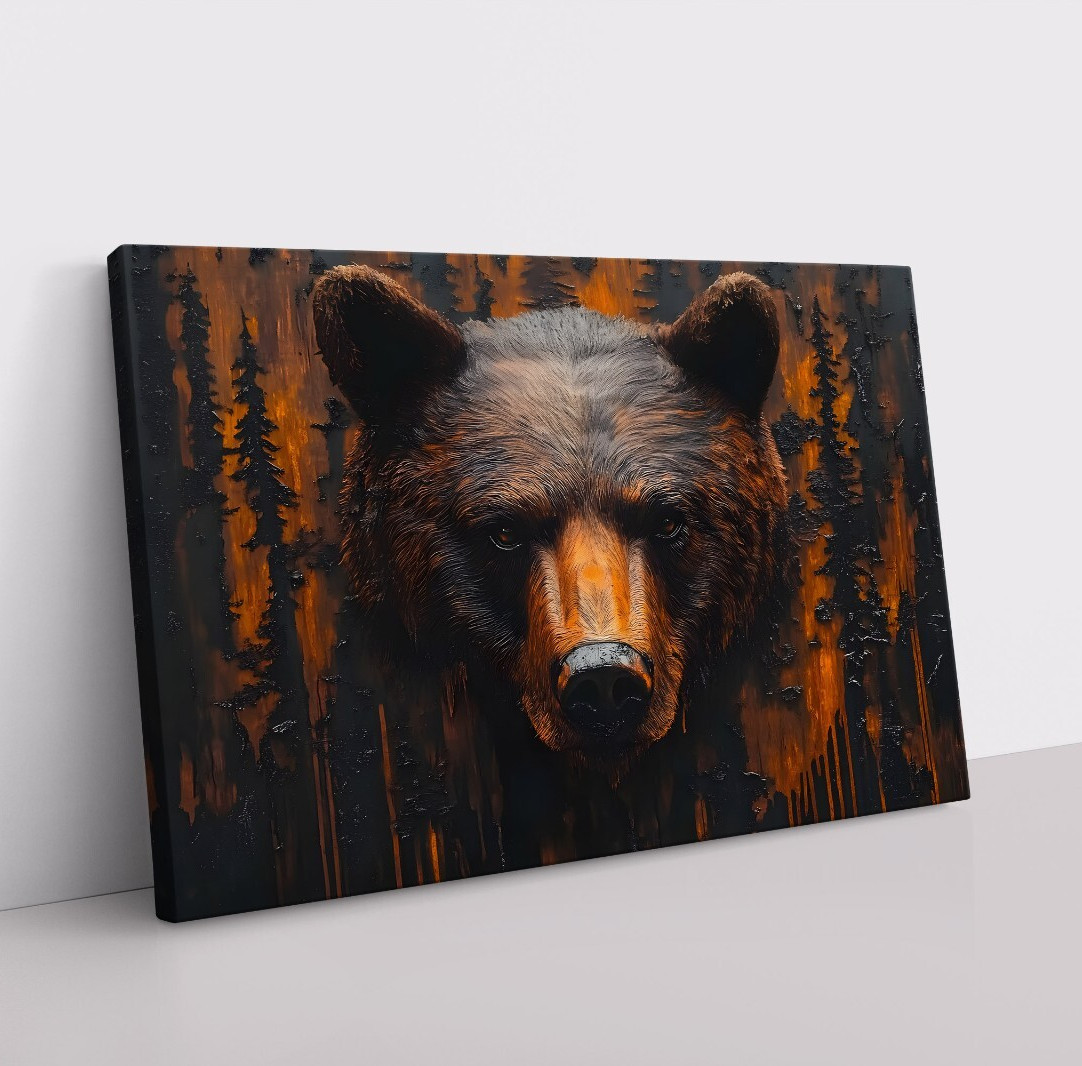 как выглядит Bear Wood Trees Wall Art Decor For Log cabin, Framed Canvas Print Animals Nature фото