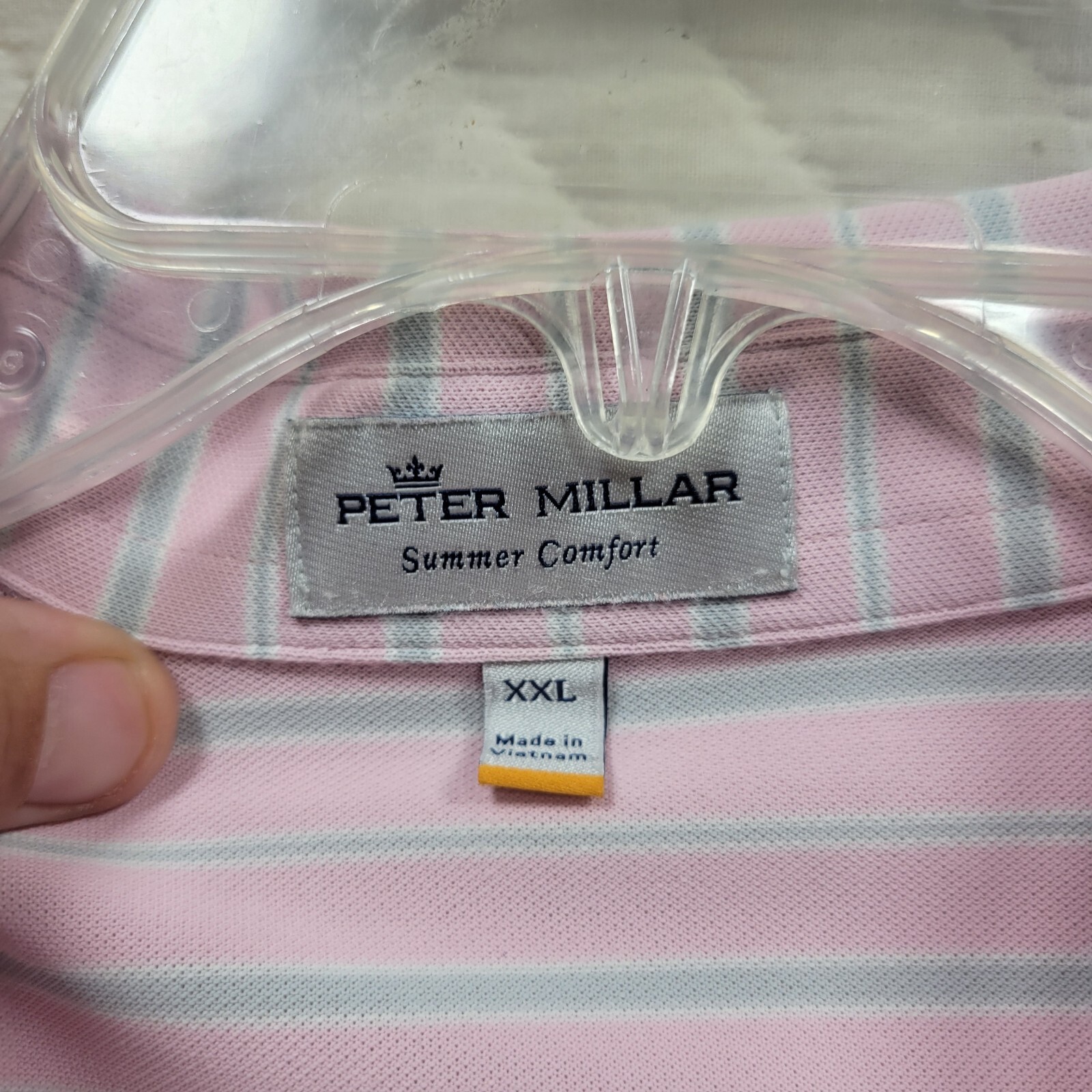 Peter Millar Summer Comfort Shirt Mens XXL 2XL Pink Striped Polo Golf Stretch