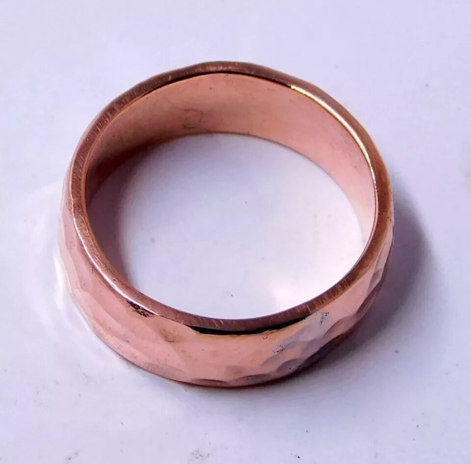 Solid Pure Copper Minimalist Healing Ring, Handmade, Unisex, Hammer Comfort Band