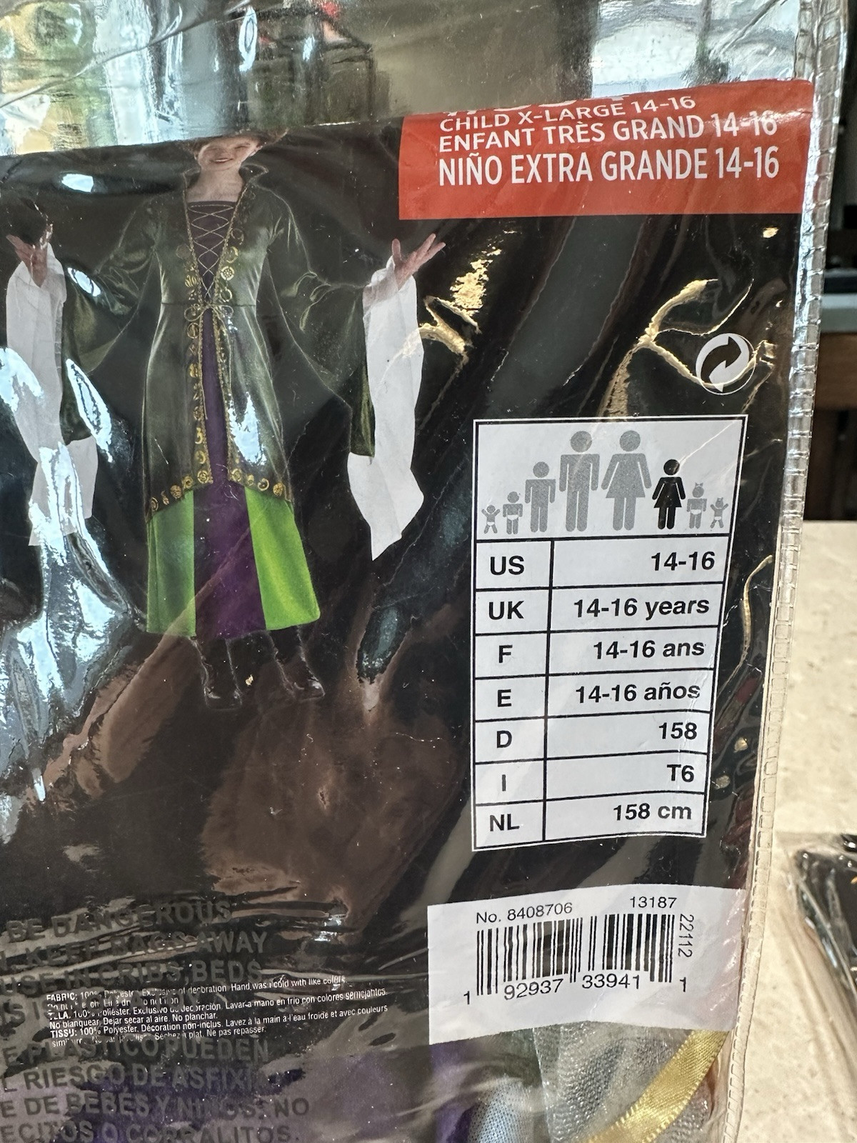 Hocus Pocus Disney Winifred Sanderson Childrens Costume - Size Child XL 14-16