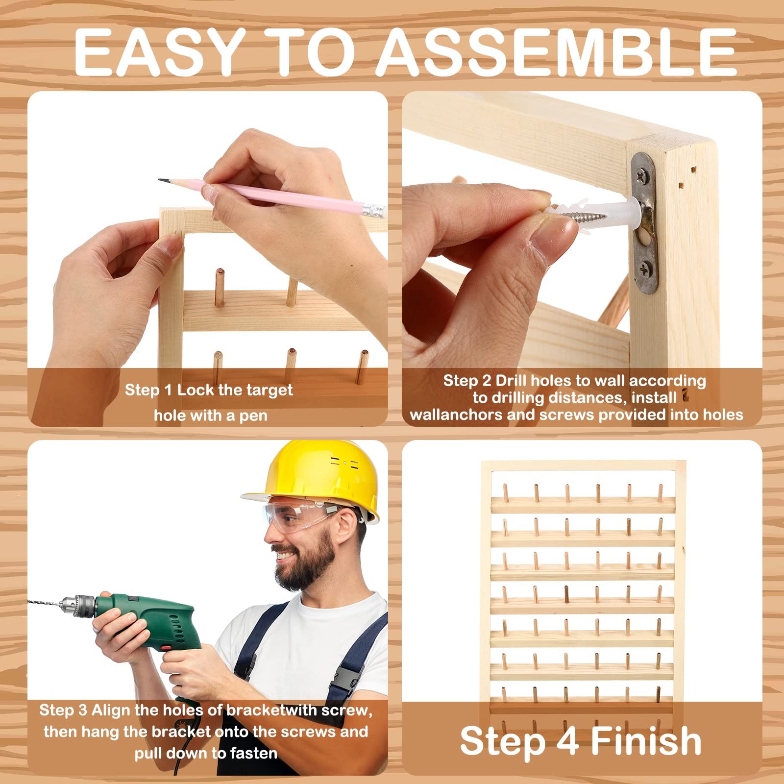 как выглядит 4 Pieces 48 Spool Wooden Thread Holder Wall Mounted Thread Rack with Hanging ... фото