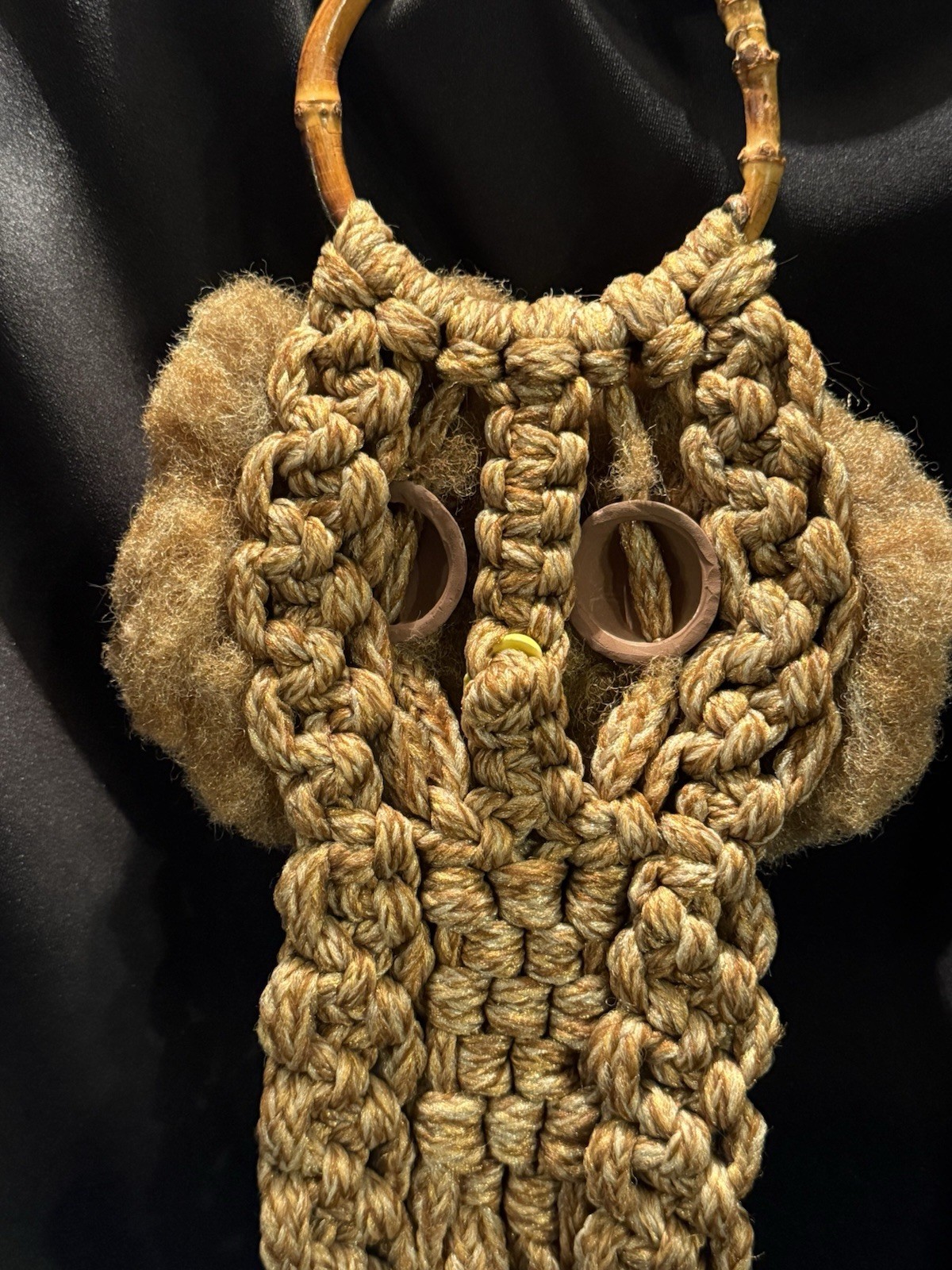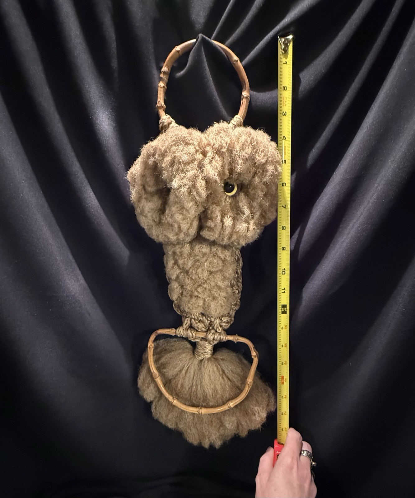 как выглядит VTG Macrame Jute OWL Wall Hanging/Towel Holder w Big Eyes 1970s Boho Retro MCM фото