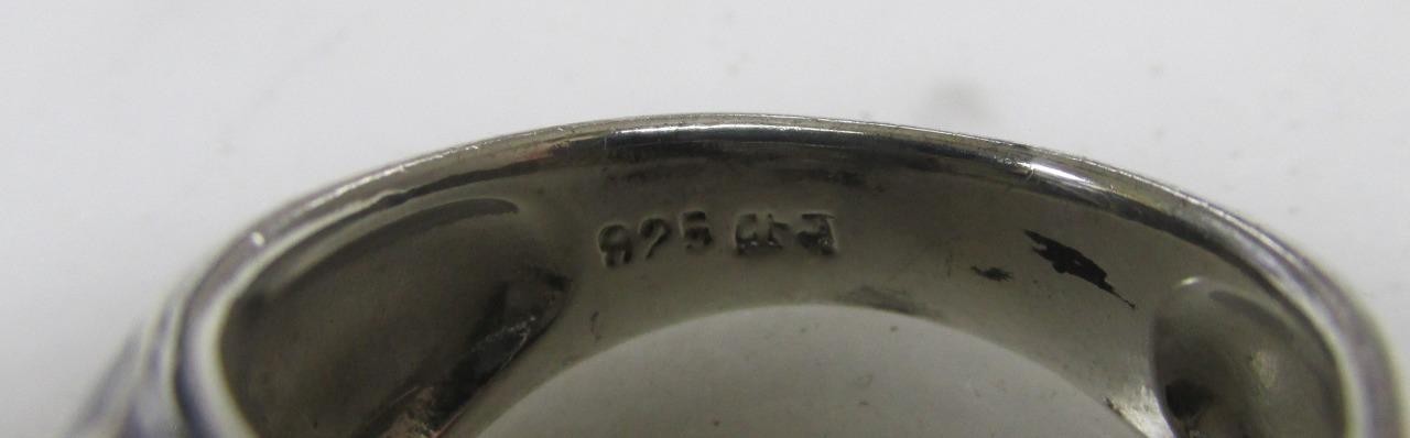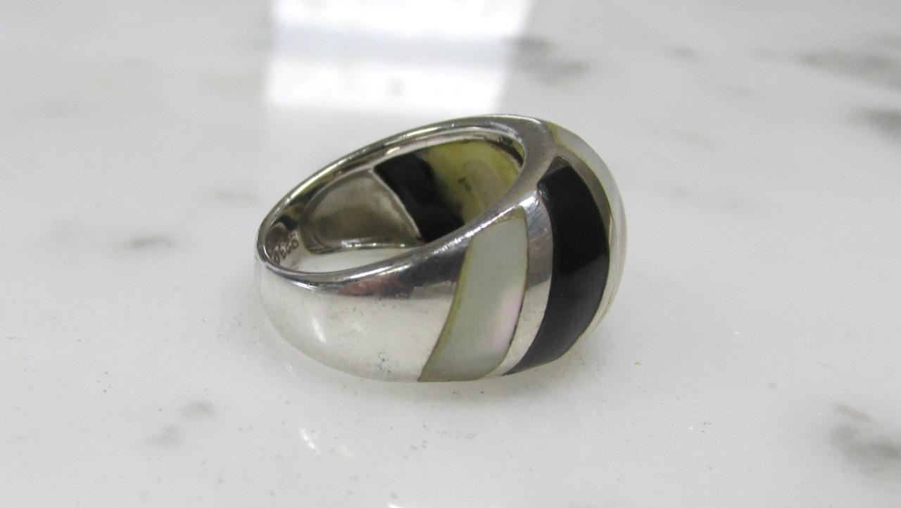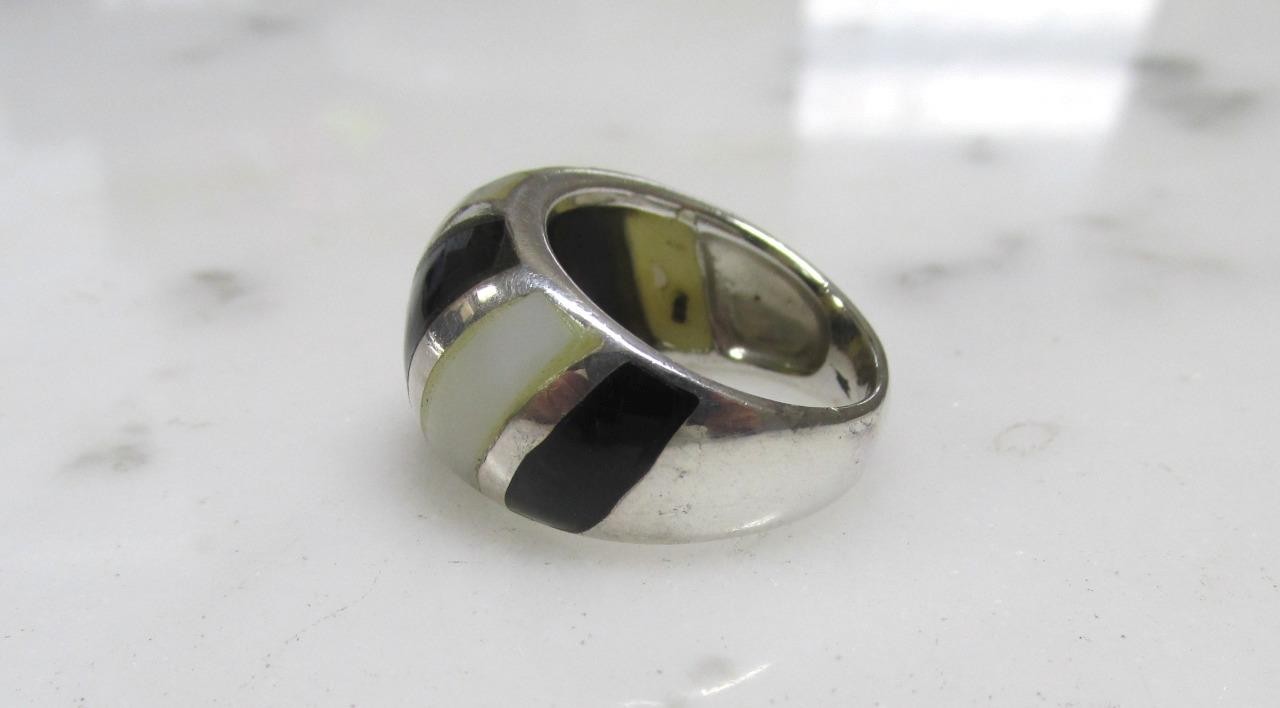 как выглядит Black Onyx Mother of Pearl Sterling Silver Dome Ring Size 5.5 6.4g 7-G575 фото