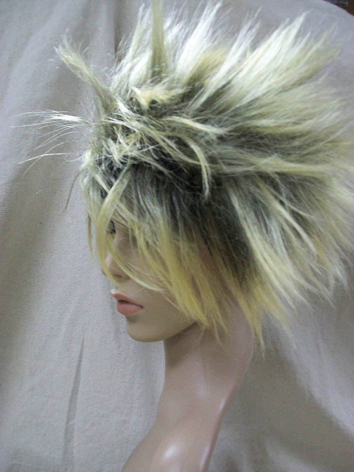 Wild Girl Wig Brass Blonde Black Spike Punk EMO Grunge Goth Anime Cosplay Frenzy