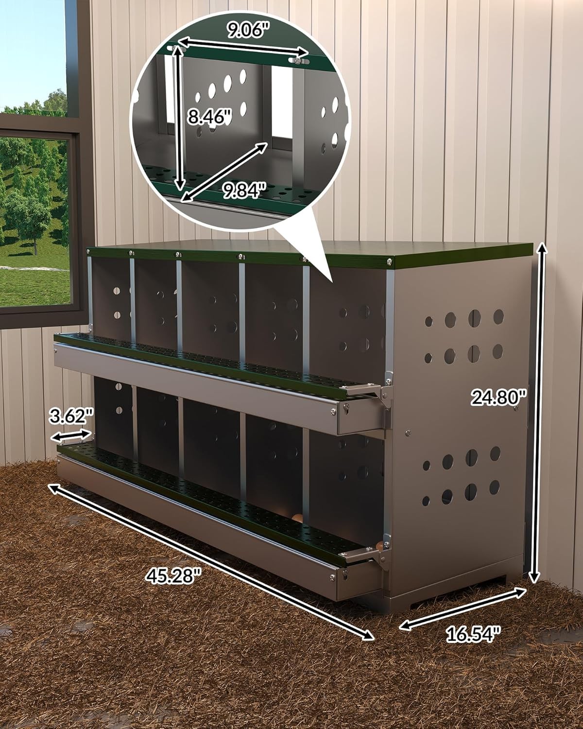 10 Compartments Chicken Nesting Box Coop Egg Laying Box Roll Away Egg Collection