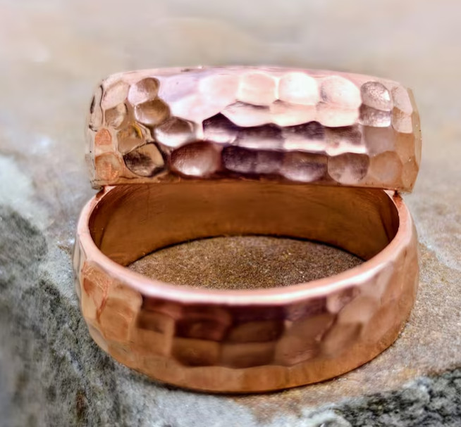 как выглядит Solid Copper Adjustable Minimalist Healing Ring, Handmade, Unisex, Hammer Band фото
