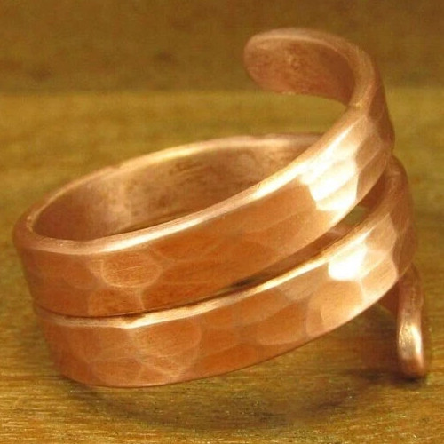 как выглядит Solid Copper Adjustable Minimalist Healing Ring, Handmade, Unisex, Hammer Band фото