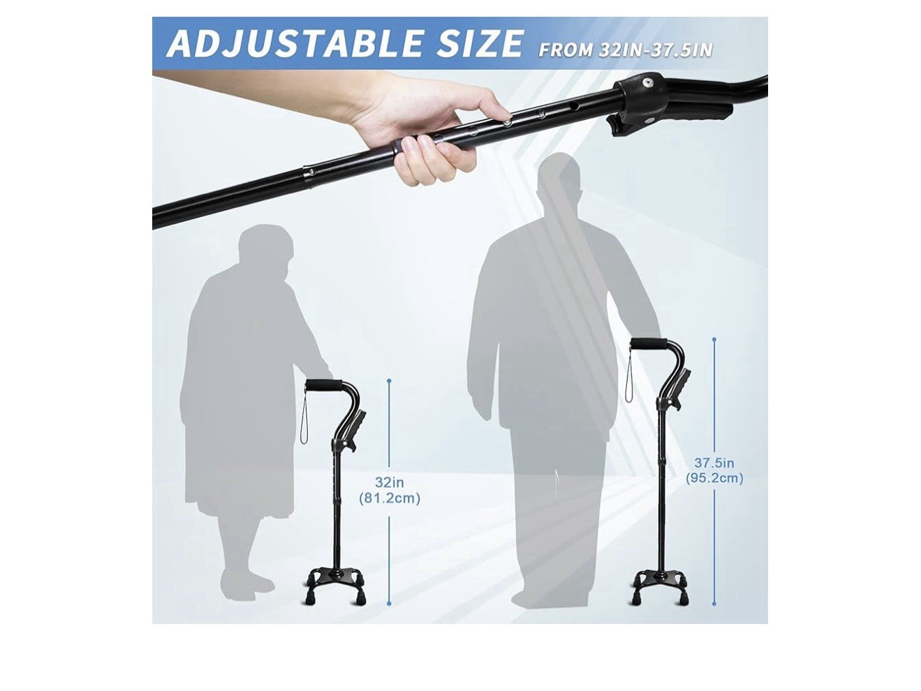 Adjustable Walking Cane for Men Women with 4-Pronged Base for Extra Stability