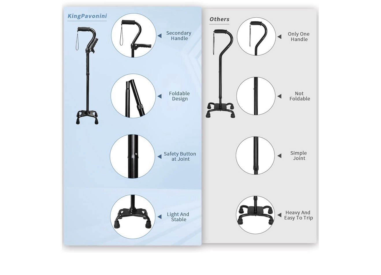 как выглядит Adjustable Walking Cane for Men Women with 4-Pronged Base for Extra Stability фото