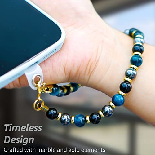 Marble Beaded Phone Wrist Strap,Detachable Phone Bracelet Strap Blue Tiger Eye