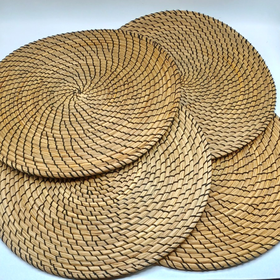 Set of 4 Round Seagrass Placemats Wicker Woven Boho Beach Nautical Natural