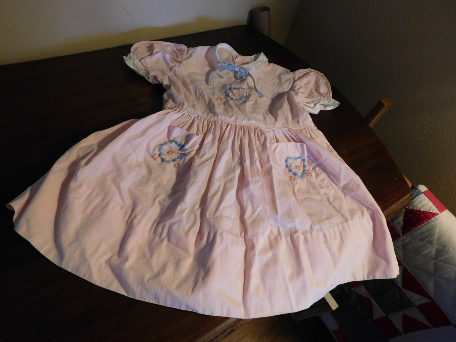 Young Land Fashions Toddler Dress Vintage Embroidered Hearts Pink Rosebuds