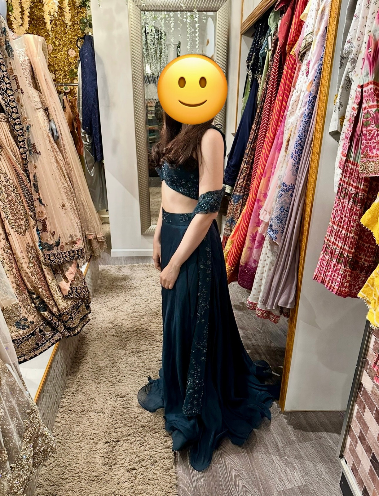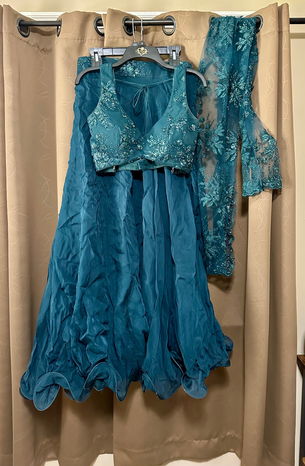 как выглядит Dark Green Embelished Lehenga Indian Dress Includes Jewelry фото