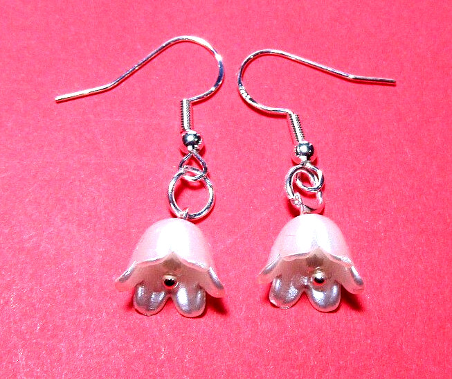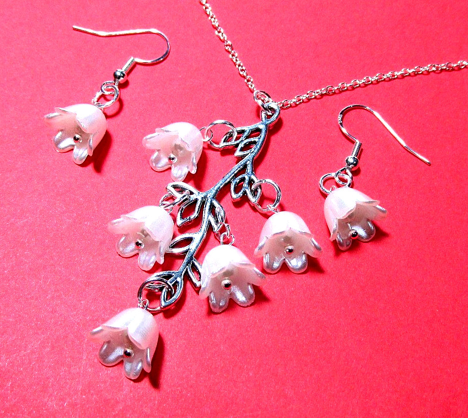 как выглядит Silver Tone White Tulip Flower 18" Necklace Pierced Earrings - NWOT 3261 фото