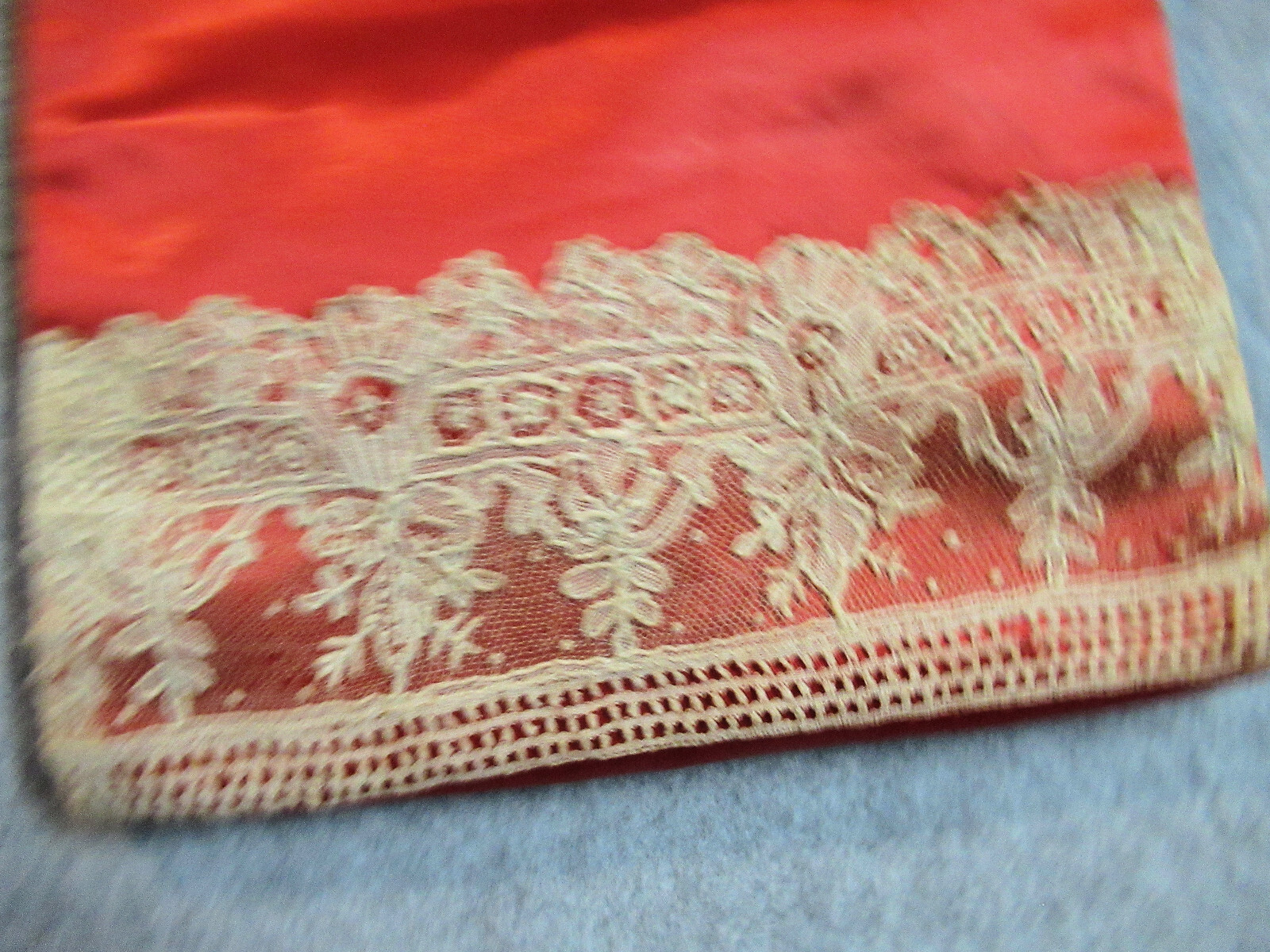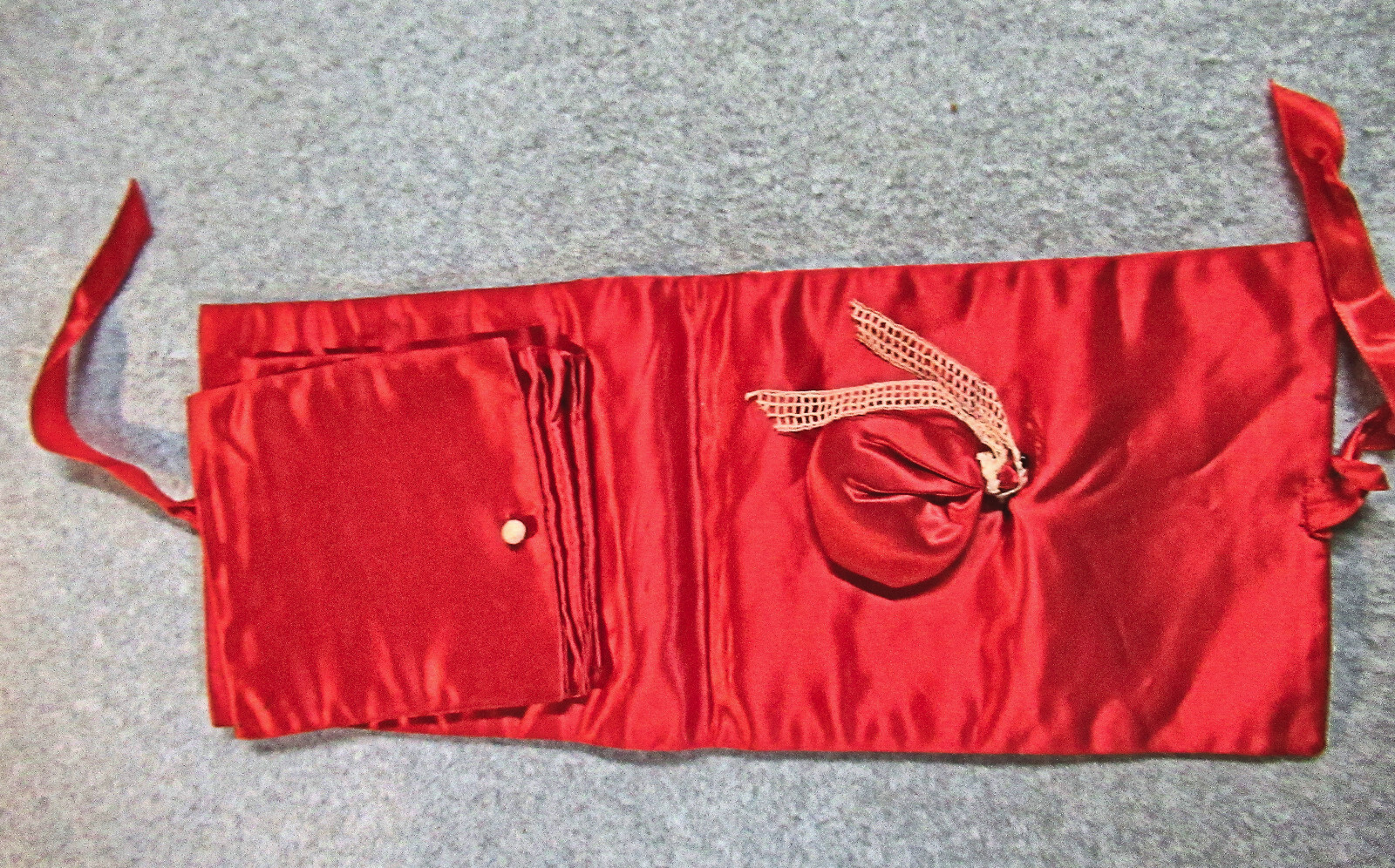 как выглядит Vtg Lingerie Trinket Bag Red Satin 4 Pockets Sachet Sac Lace Trim фото
