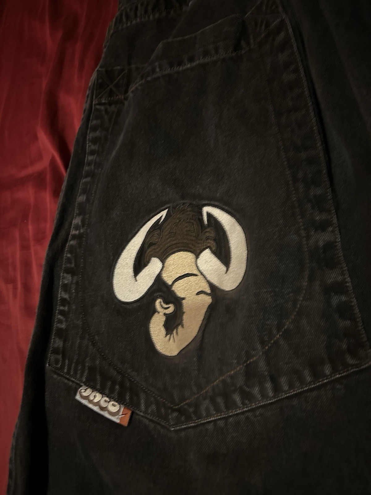 как выглядит JNCO Jeans Mammoth Wide Leg Y2K Baggy 2000s Style Skater Grunge Denim фото