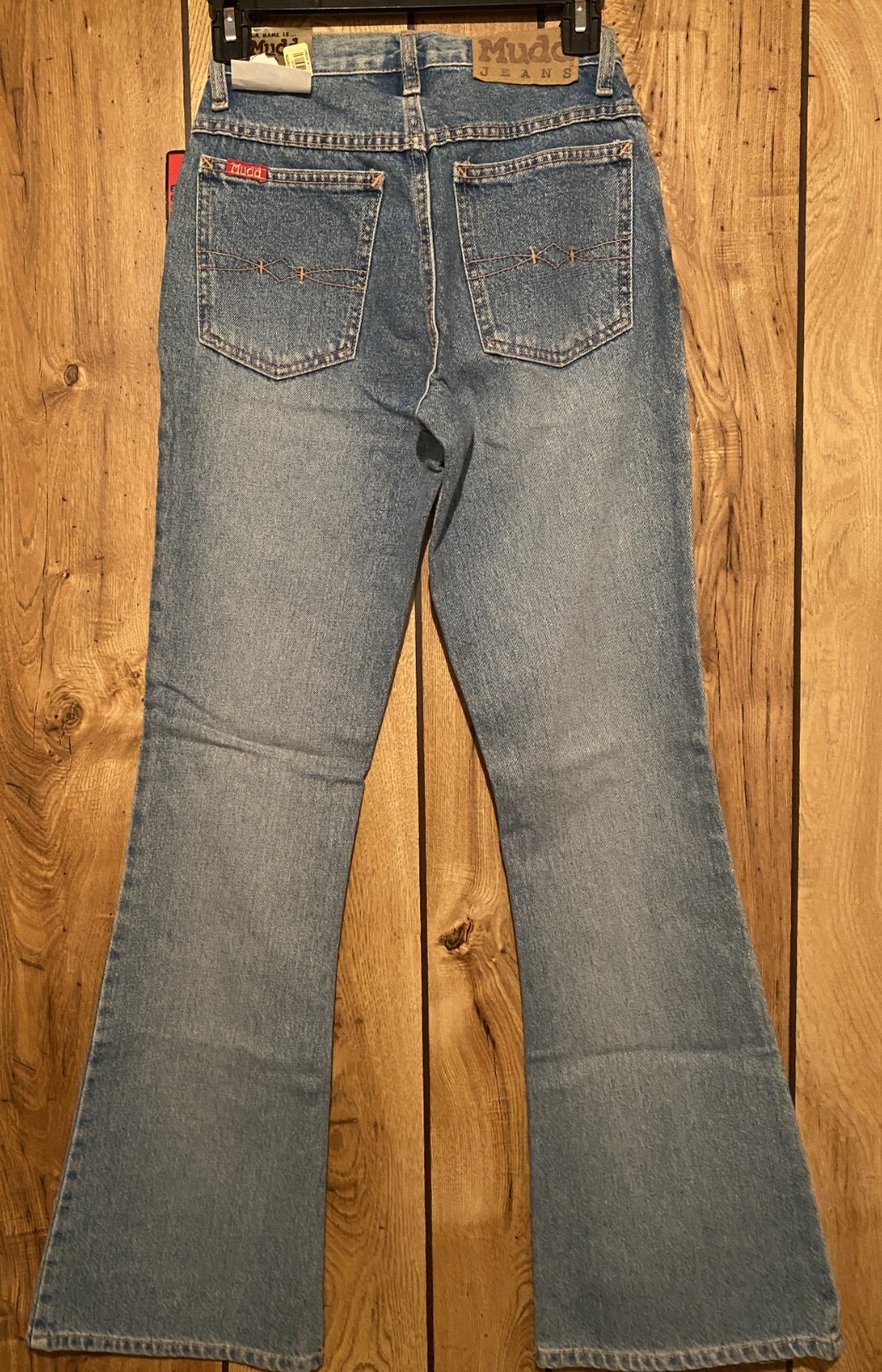 Vintage NWT MUDD Sz 1 Mid Rise Bell Bottom Flare Blue Denim Jeans