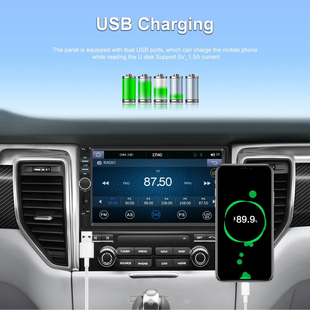 7 Double 2 DIN Bluetooth Head Unit Car Stereo Touch Screen Radio Apple Carplay