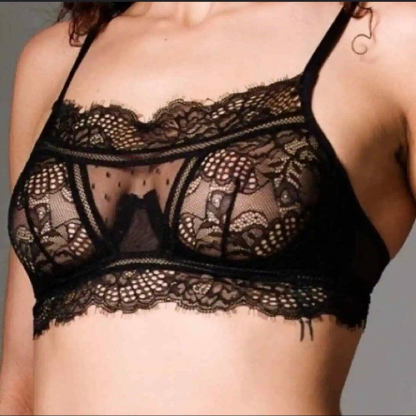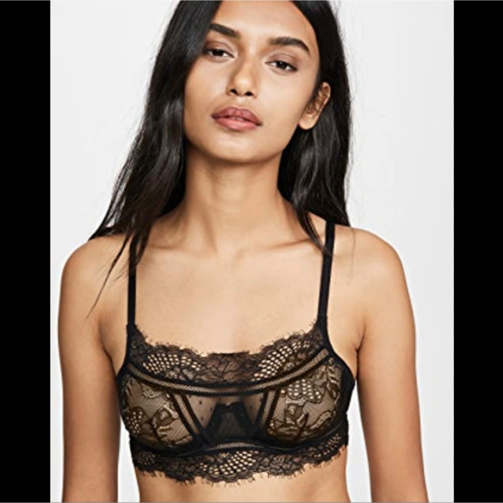 как выглядит Thistle and Spire Amore Black Wired Eyelash Lace Bralette XS NWT фото