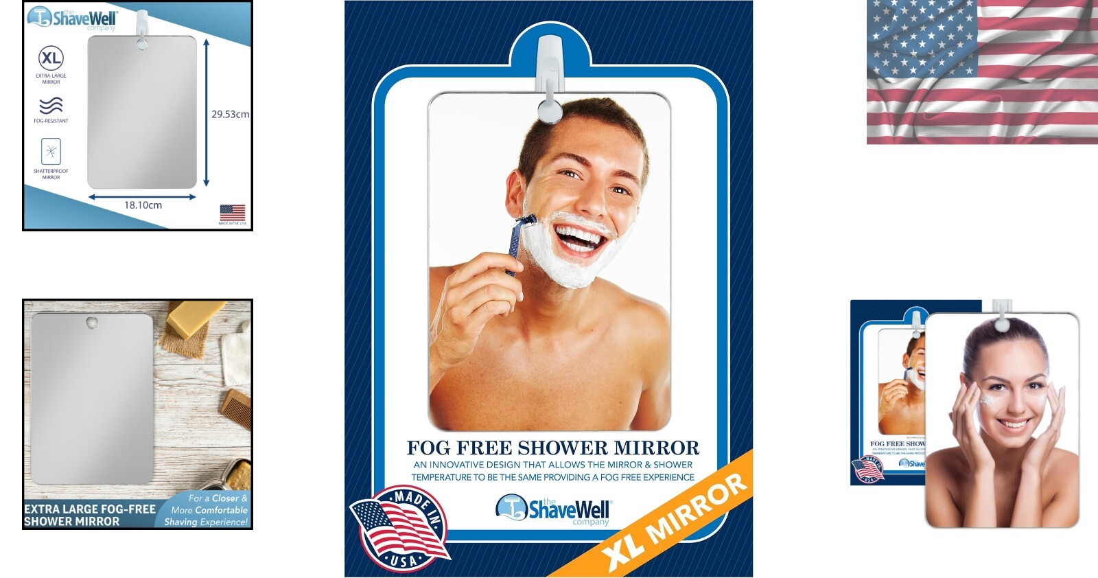 Fog-Free Bathroom Shower Mirror - Includes Removable Adhesive Hook for easy use
