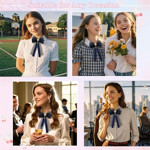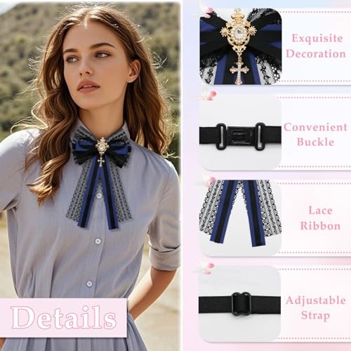 Lace Bow Ties for Women Girl, Pre-tied Adjustable Womens Bowtie Navy Blue