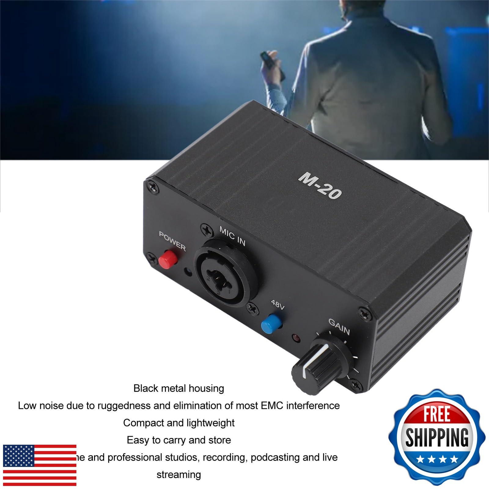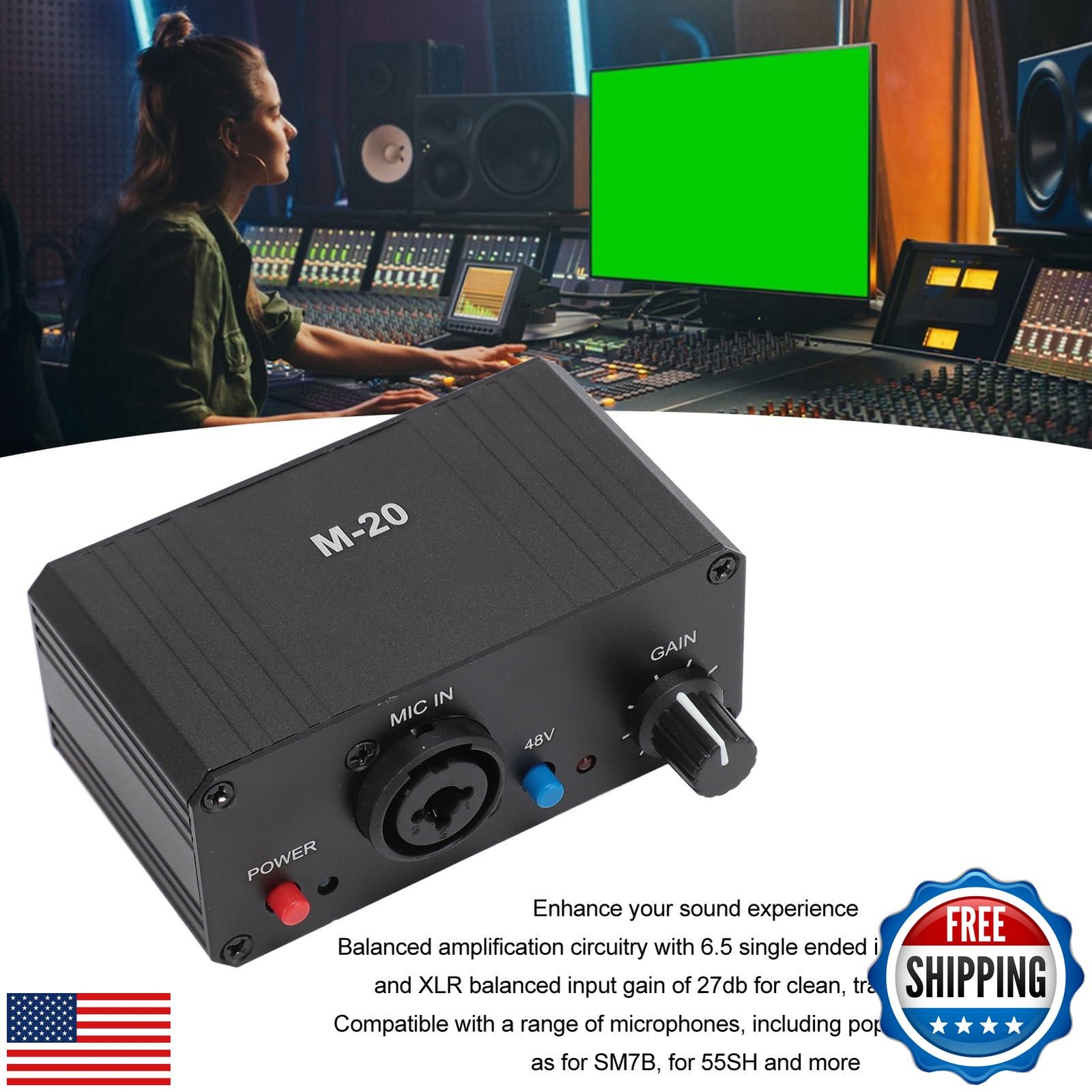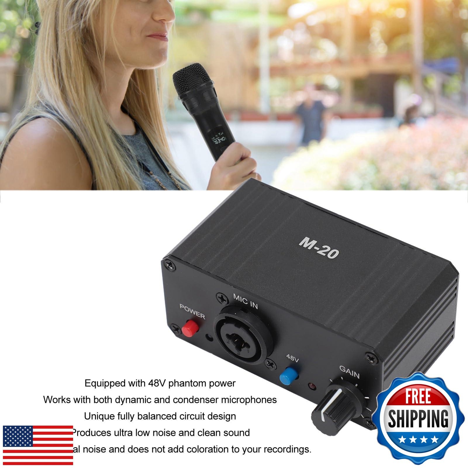 Microphone Preamp, Mic Gain Booster 48V Power XLR Output for Dynamic Condense