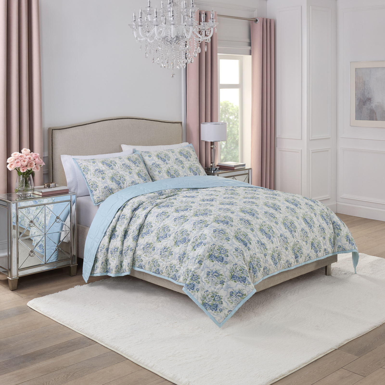 как выглядит Coquette Blue Floral 3-Piece Full Queen Quilt Set, for Adults and Teens,new фото