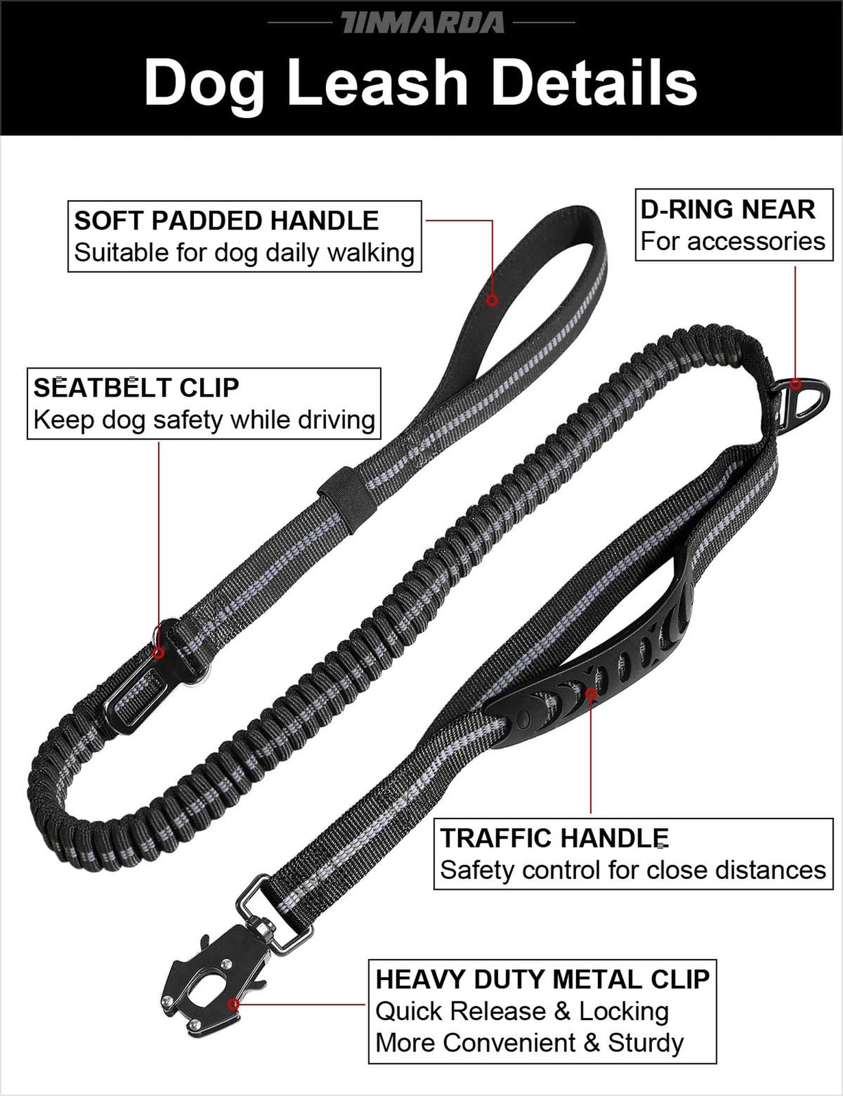 Heavy Duty Dog Leash, 4-6FT Shock Absorbing Dog Leashes with Traffi... Fast Ship